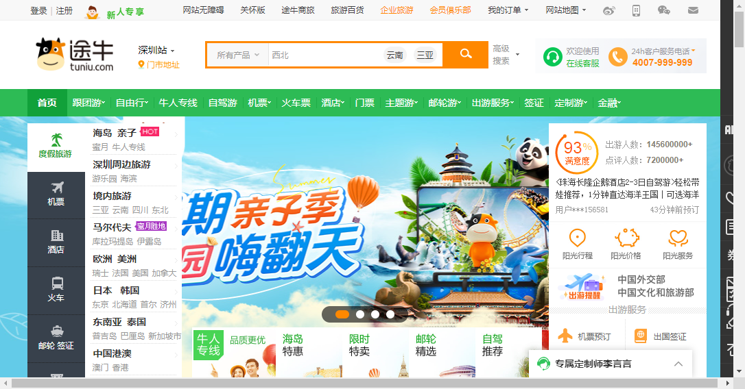 途牛旅游网以其优质的服务和丰富的旅游资源赢得了广大用户的信任和好评。根据途牛旅游网的数据显示,其用户满意度高达94%,出游人数已超过145600000+,点评人数达到7200000+。这些数字充分证明了途牛旅游网在在线旅游服务领域的领先地位和良好口碑。
