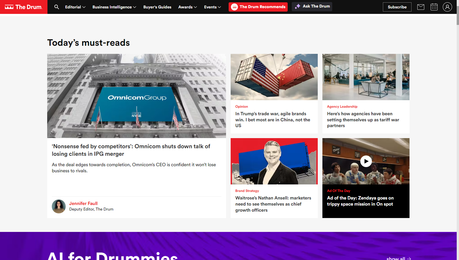 作为国际知名的行业媒体,The Drum 每日持续追踪并发布最新的营销新闻、广告动态、数字媒体趋势及深度评论。我们不仅报道事件,更致力于解读背后的商业逻辑与创新策略。无论是像联想CMO如何运用AI营销重新定义产品类目的顶尖案例,还是对WPP等巨头公司战略变迁的犀利分析,The Drum 都能为您提供超越新闻表面的宝贵行业洞察。