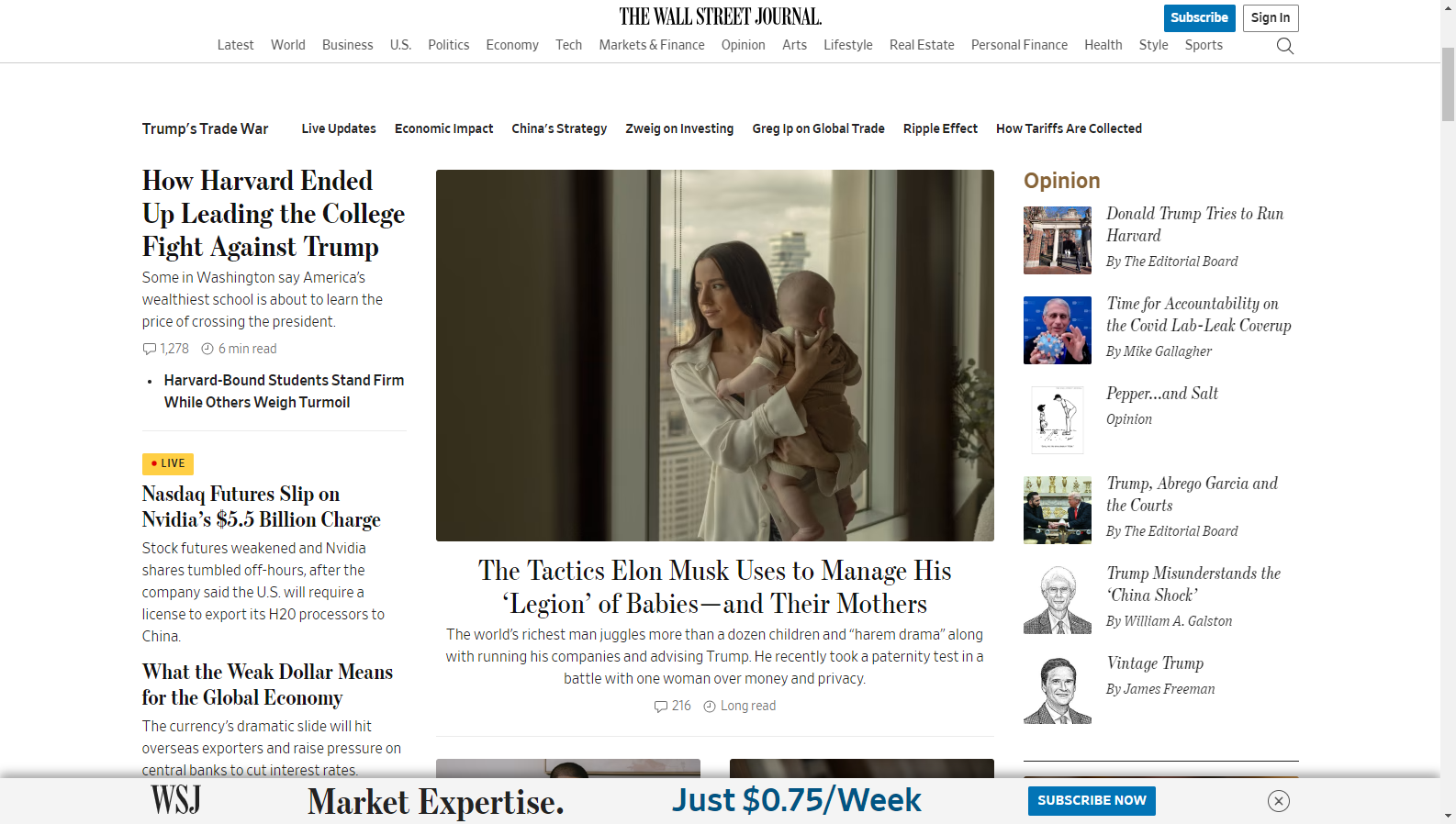 每一天,《华尔街日报》的记者网络遍布全球,为您带来关于股市动态、公司财报、宏观经济政策以及科技创新的第一手报道。无论是美股的波澜起伏,还是美联储的政策转向,抑或是人工智能对产业的革命性影响,我们都能提供超越头条的深度解读。我们的调查报道揭露商业真相,我们的评论版面汇聚顶尖思想,帮助您在关键时刻做出明智决策。