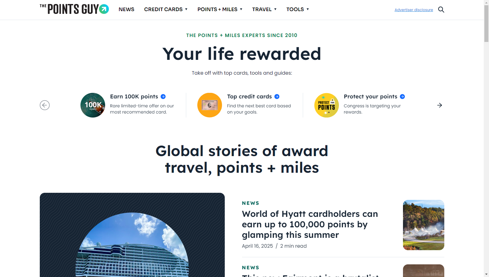 The Points Guy (TPG) 是一个权威的旅行积分和信用卡奖励指南平台,致力于帮助用户通过聪明地积累和使用积分里程,最大化旅行价值,实现高品质、低成本的环球旅行梦想。