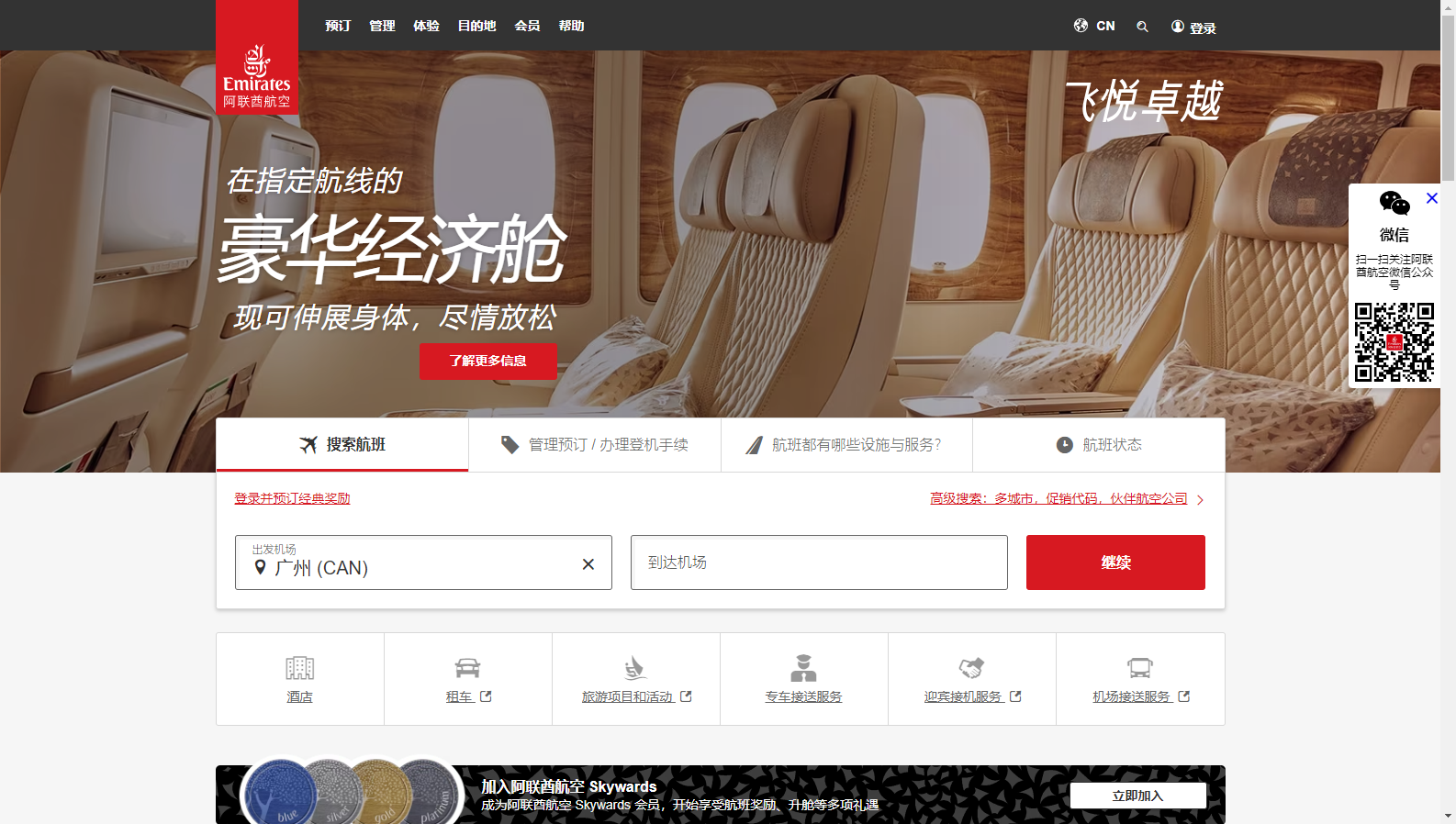 立即访问阿联酋航空官网,开启您下一段超越期待的空中之旅。预订直飞航班,尊享专属优惠,让世界之美,触手可及。